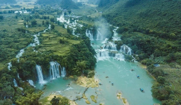 La cascade de Ban Giôc est l’une des merveilles naturelles les plus majestueuses du Vietnam, située au Nord-Est de la province de Cao Bang (Nord). Avec une cascade de 30 m de haut entourée d’une végétation luxuriante, elle crée atmosphère tout à fait spéciale.