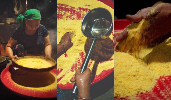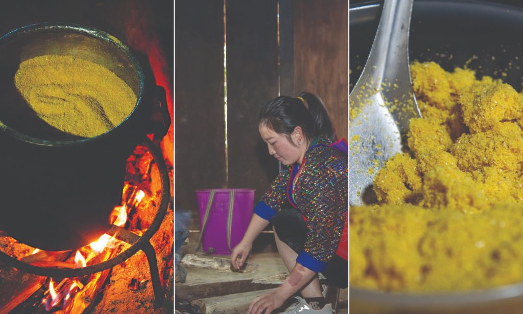 Préparé à base de farine de maïs cuite à la vapeur, le mèn mén est un plat rustique et traditionnel de l’ethnie H’mông.