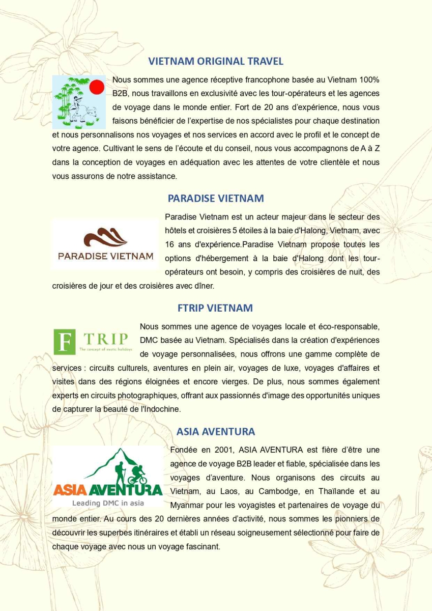 Autres services touristiques